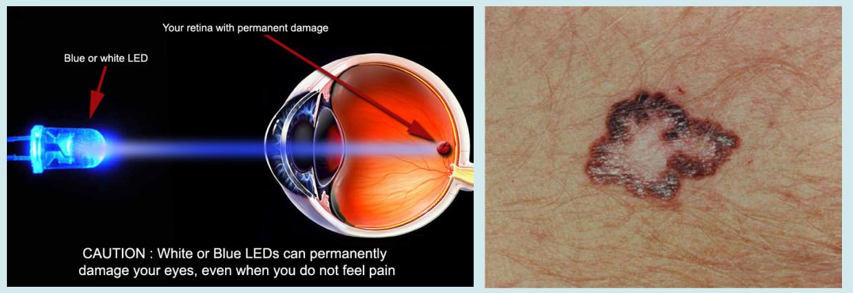 D,發光二極管及激光也能透過光化學損害視網膜及皮膚