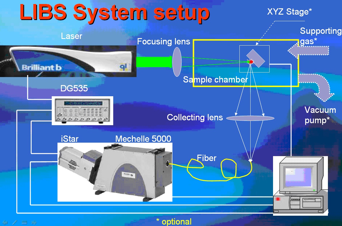 LIBS純光學技術,這意味著實驗裝置和樣品間只有光學接觸,系統可以很方便的跟其它光學裝置(望遠鏡、顯微鏡、光纖),實現微區測量、遠程測量甚至遙測;