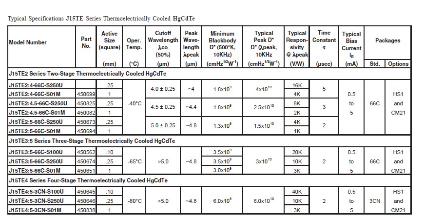 針對于FTIR特點,美國JUDSON公司的MCT探測器,具備靈敏度高,信噪比好等性能優(yōu)點,涵蓋2-22um的寬光譜范圍,從而能夠有效凸顯FTIR性能特點,進(jìn)一步提升FTIR的性能優(yōu)勢。該系列產(chǎn)品有兩種制冷方式可供選擇,TE制冷與液氮制冷,既可以滿足用戶對高性能的追求,又能夠提升探測器使用的方便性。