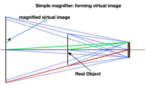 什么是“虛擬”圖像?最基本的,虛擬圖像是投射到空間的圖像。產生虛擬圖像的典型設備包括矯正眼鏡、雙筒望遠鏡、放大鏡、眼鏡、顯微鏡、望遠鏡、步槍瞄準鏡、近眼顯示器和平視顯示器。這些設備中的每一個都形成一個近場圖像,用眼睛觀看并適應基于儀器設計的距離。在創建“虛擬圖像”時,亮度和顏色測量是關鍵因素。這兩個都受到瞳孔的物理大小的影響