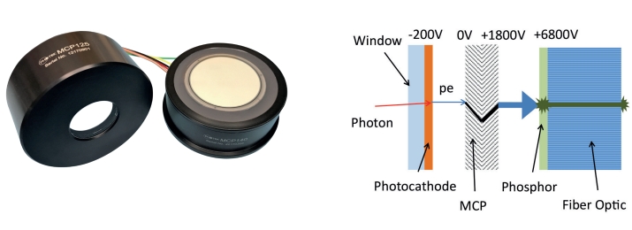 MCP像增強器:英國Photek 是一家生產像增強器、超快 PMT、條紋相機管、真空粒子探測器以及單光子計數相機系統的廠家。其像增強器最大口徑可達150mm,*多可做到 3級MCP 連用。