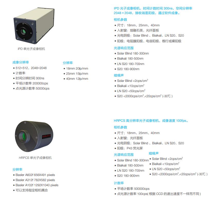 > 主要應用:電暈探測、紫外預警、弱光探測、微光夜視、導彈預警、時間分辨測試、條紋相機、分幅相機