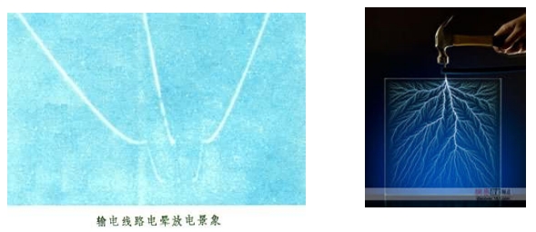 當加上高壓后,會在電極附近產生空氣的局部放電——電暈放電,電壓再加高時,電暈放電更加強烈,致使間隙內發生刷狀放電,而后就擊穿了(電弧放電)。如棒-板間隙,在尖電極附近電場強度最大,加上高壓后,電極附近先產生電暈放電,而板上的電力線很疏,不會產生電暈。