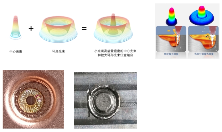 與普通光纖激光器相比,環形光斑激光器是將單一的高斯分布激光束,改為較復雜的由環狀+中心光束組合而成的環形光束,且兩個光斑都可以實現激光功率和出光時間的實時獨立調整,為激光焊接帶來了更大的靈活性和可能性。