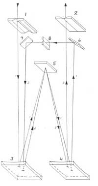 Double Pass 光路結(jié)構(gòu): 1.入射狹縫;2. 出射狹縫; 3. 準直反射鏡; 4. 聚焦反射鏡; 5. 光柵; 6. Double Pass反射鏡; 7. Double Pass 反射鏡; 8.中央孔徑狹縫