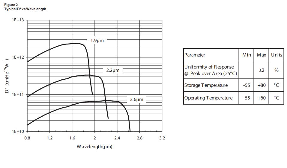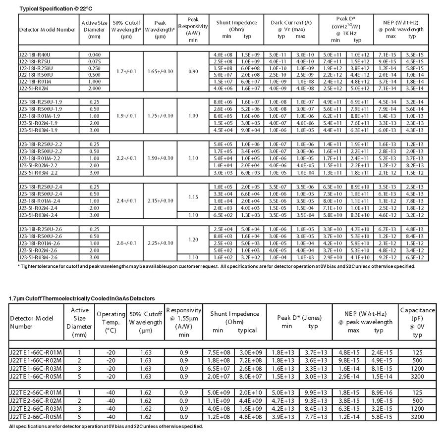 主要InGaAs紅外探測器選型表