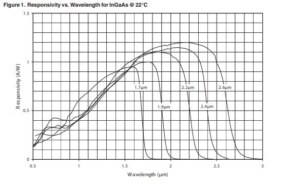高性能InGaAs紅外探測器具有快速的響應時間、出色的靈敏度和長期的可靠性。根據In、Ga、As三種元素的比例不同,探測器有四種截止選擇,分別為1.9µm, 2.2µm,2.4µm和2.6µm,為客戶的不同應用提供合適的產品。