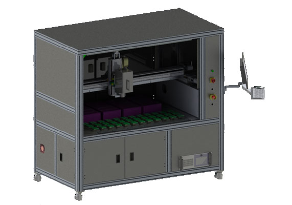 - 采用平鋪式布局,搭載亮度計在X\Y\Z三個方向運動,產(chǎn)品點亮后,亮度計依次采集亮度變化,獲取lifetime數(shù)據(jù)。