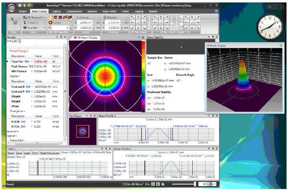 BeamCheck 和 BeamPeek 集成 CCD 光束分析儀直接探測高功率激光的光斑,以及一臺功率計用于實時監(jiān)測測量激光的功率。特殊的分束系統(tǒng)使其可以直接用于高功率激光,極小部分功率被分配給光束分析儀進(jìn)行光斑分析,而大部分功率由功率計直接探測激光功率。可在近場或焦點處測量。