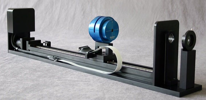 狹縫掃描式測量M²因子主要是使用狹縫掃描式設備代替光束質量分析儀,通常是OPHIR公司的NANOSCAN系列產品,通過收集狹縫掃描式設備收集X-Y兩個軸的光斑尺寸,然后擬合繪制出光束的光斑尺寸,再結合一維導軌測得束腰位置參數,計算得M²因子。整套方案見下圖: