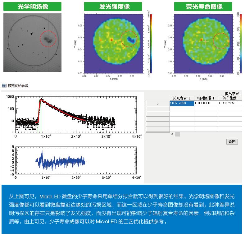 單組分?jǐn)M合,可以看到紅圈中的污損位置,雖然影響發(fā)光強(qiáng)度,但對(duì)發(fā)光壽命沒(méi)有影響
