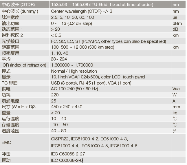 • 可測(cè)試長(zhǎng)達(dá)一萬(wàn)二千公里的海底光纜
