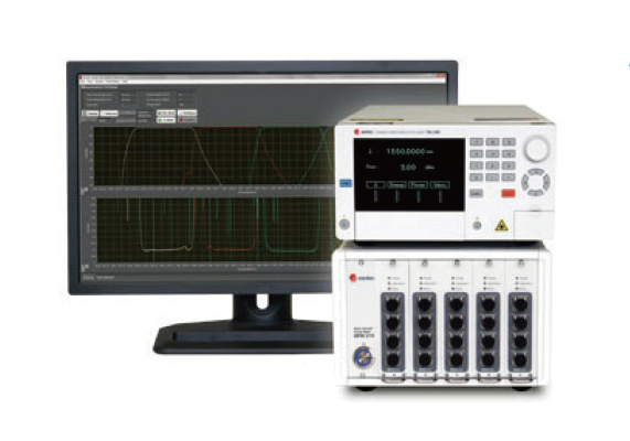 快速掃描測(cè)量系統(tǒng)整合了TSL 可調(diào)諧激光器、MPM 光功率計(jì)、PCU 偏振控制器及根據(jù)用戶需求自定義的軟件,為R&D 及生產(chǎn)環(huán)境的IL、WDL、PDL 測(cè)試提供快速、多功能、全自動(dòng)的平臺(tái)。系統(tǒng)同時(shí)采集可調(diào)諧光源的輸出功率及DUT 透過(guò)的光功率作實(shí)時(shí)參比,獲取高精度的IL、WDL 以及PDL(采用Muller 矩陣方法)。