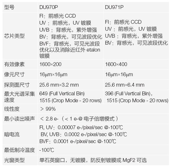 NewtonEM 系列科學級光譜EMCCD 包含DU970P 及DU971P 兩款,芯片分別為1600*200 及1600*400。同時具備EMCCD 及CCD 工作模式,在微弱光信號探測時可以實現1000 倍的增益,與CCD 相比可以在更短的時間內得到相同的信噪比,尤其適合弱信號的快速采譜。