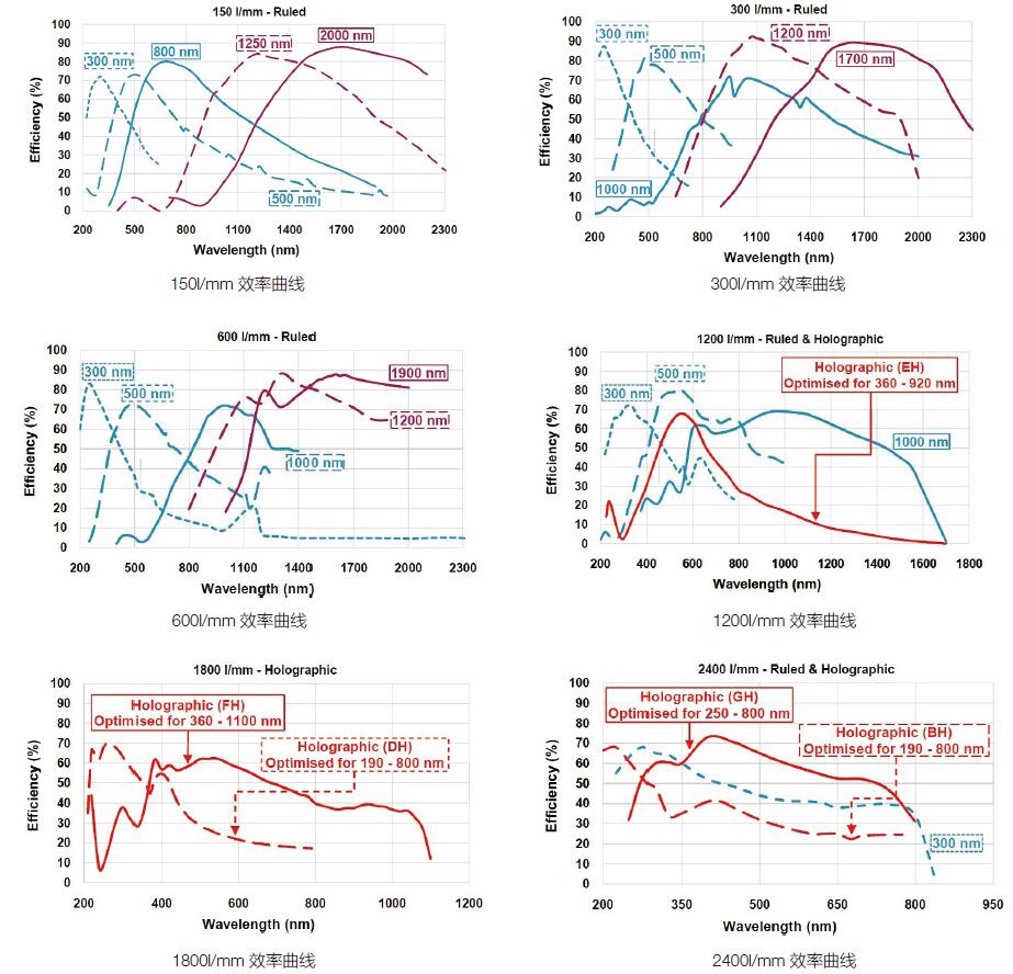 2)波長范圍:選擇合適的光柵閃耀波長,及光柵覆蓋波長