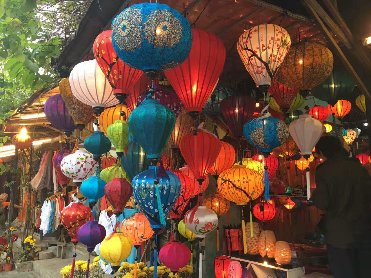 會安仿佛是一座中國古鎮,滿街的中式會館掛著紅燈籠,到處可見的中國文字。會安給人的感覺是寧靜的,安逸的。我們在這里既能欣賞到古老的文化傳統,又能感受到濃郁的地域氣息。燈籠是不可或缺的當地特色,夜幕降臨時分,秋盆河兩岸的爭奇斗艷燈籠成為了會安*大的特色。