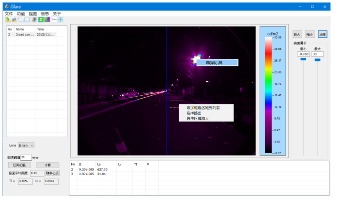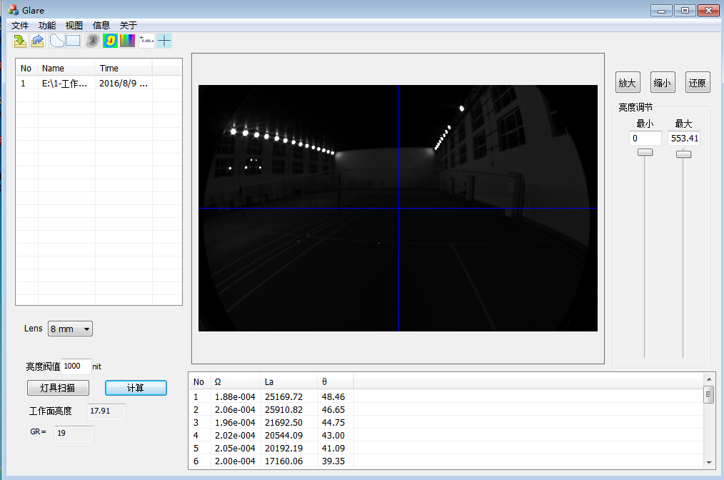 眩光測試已經成為世界各國在建筑照明和道路照明上重點關注的項目, 快速準確得到眩光值已迫在眉睫。為解決眩光快速準確測試的難題,北京卓立漢光儀器有限公司針對此難題開發了眩光測試系統及眩光測試軟件。眩光測試軟件主要通過分析成像亮度計的影像信息,對法規規定的眩光評價指標(統一眩光值UGR,眩光值GR,道路照明閾值增量Ti)進行計算和測量。